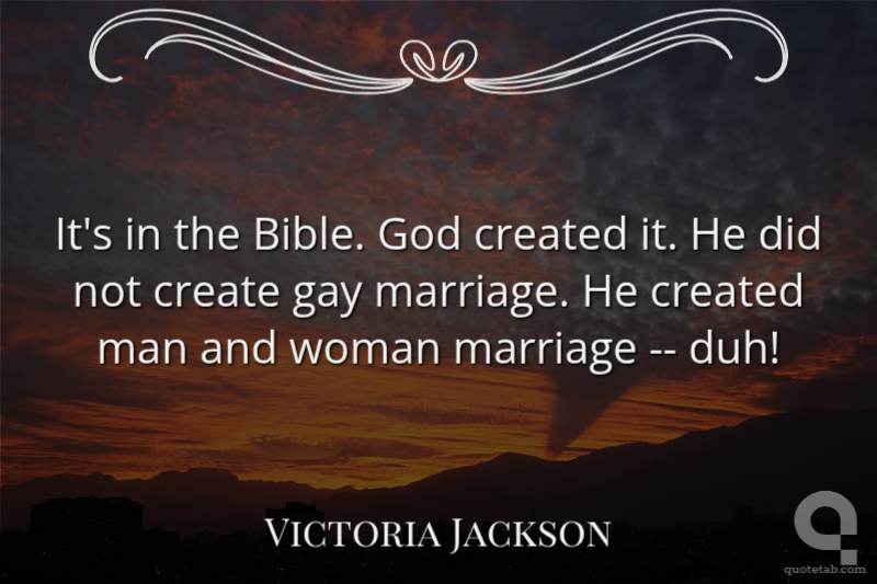 It's in the Bible. God created it. He did not create gay marriage. He created man and woman marriage -- duh!