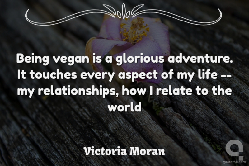 Being vegan is a glorious adventure. It touches every aspect of my life - my relationships, how I relate to the world.