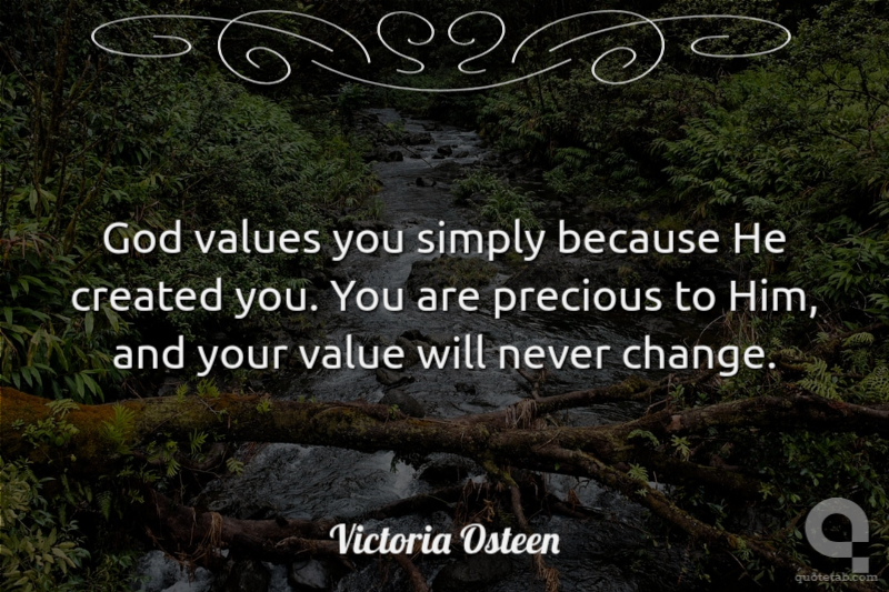 God values you simply because He created you. You are precious to Him, and your value will never change.