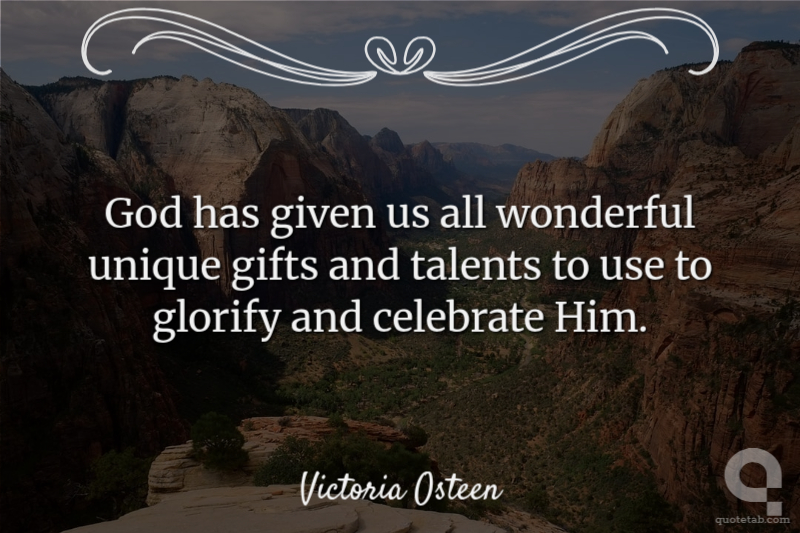 God has given us all wonderful unique gifts and talents to use to glorify and celebrate Him.