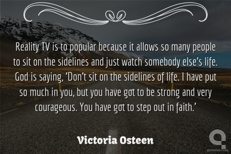 Reality TV is to popular because it allows so many people to sit on the sidelines and just watch somebody else's life. God is saying, 'Don't sit on the sidelines of life. I have put so much in you, but you have got to be strong and very courageous. You have got to step out in faith.'