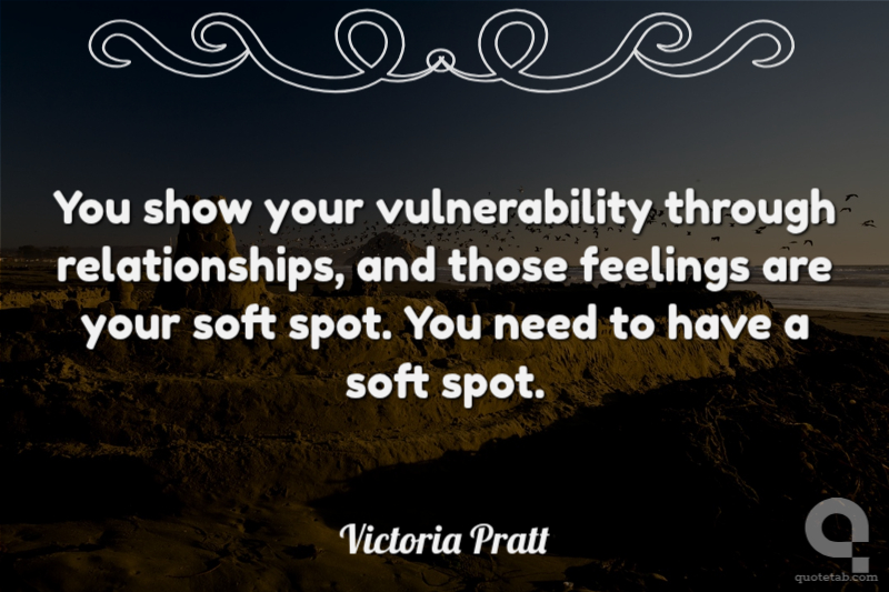 You show your vulnerability through relationships, and those feelings are your soft spot. You need to have a soft spot.