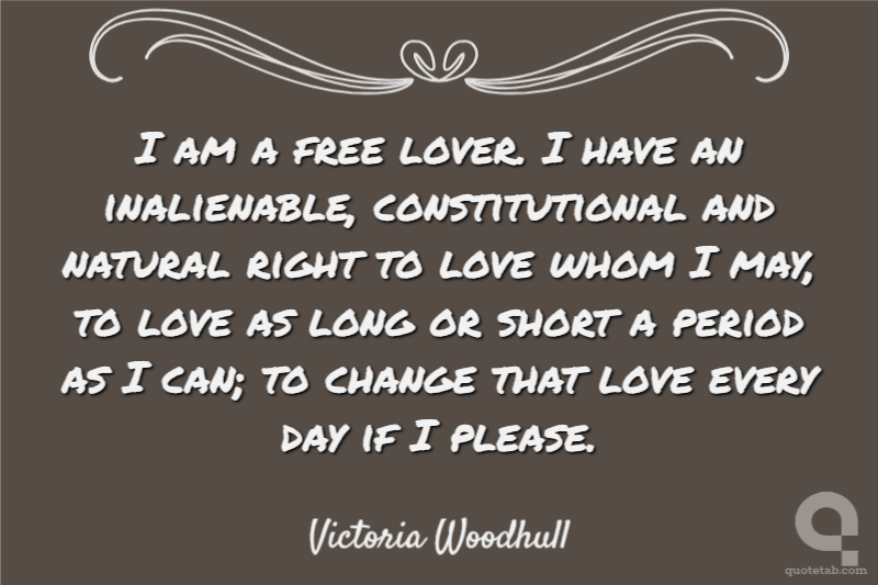 I am a free lover. I have an inalienable, constitutional and natural right to love whom I may, to love as long or short a period as I can; to change that love every day if I please.