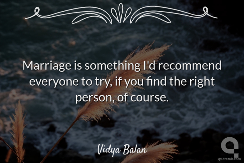 Some people warned me against getting married soon. They said your career will end if you do. I felt I wanted to marry Siddharth (Roy Kapur) and I went ahead and married him. And I guess he felt like he wanted to marry me, so we are married today. If I hadn’t felt it for the next ten years probably I wouldn’t have got married. There is no right time. There’s never a right time.