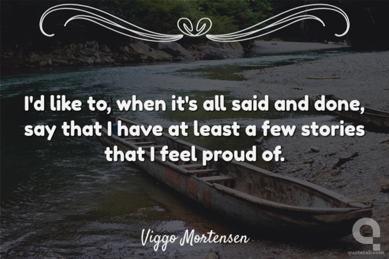I'd like to, when it's all said and done, say that I have at least a few stories that I feel proud of.