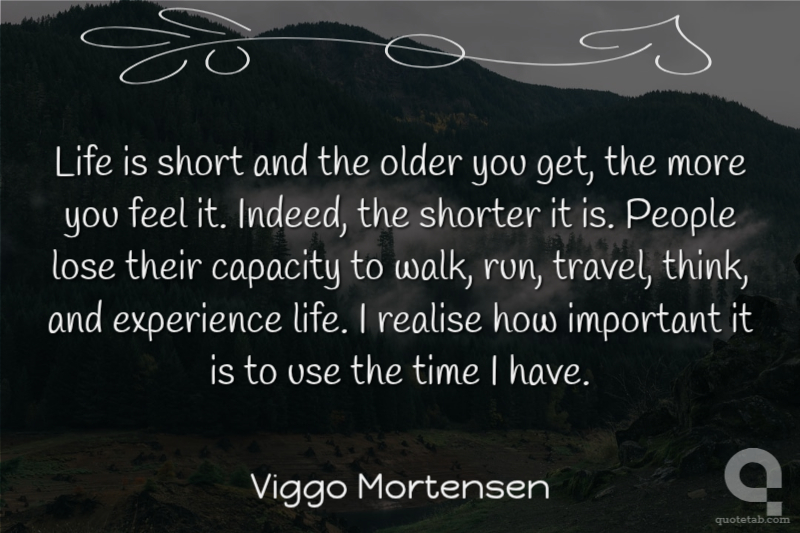 Life is short and the older you get, the more you feel it. Indeed, the shorter it is. People lose their capacity to walk, run, travel, think, and experience life. I realise how important it is to use the time I have.