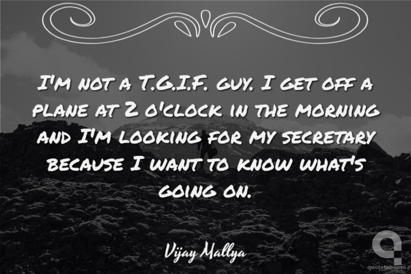 I'm not a T.G.I.F. guy. I get off a plane at 2 o'clock in the morning and I'm looking for my secretary because I want to know what's going on.