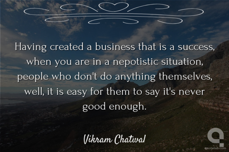 Having created a business that is a success, when you are in a nepotistic situation, people who don't do anything themselves, well, it is easy for them to say it's never good enough.