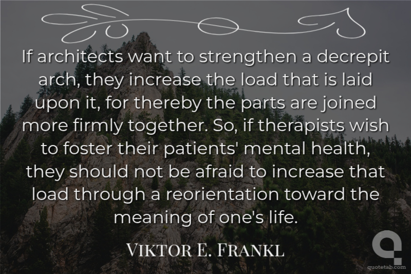 If architects want to strengthen a decrepit arch, they increase the load that is laid upon it, for thereby the parts are joined more firmly together. So, if therapists wish to foster their patients' mental health, they should not be afraid to increase that load through a reorientation toward the meaning of one's life.