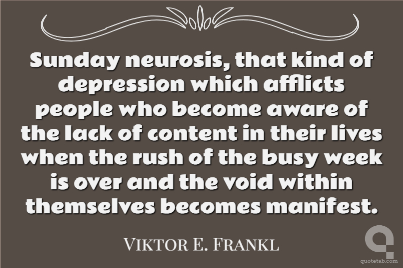 Sunday neurosis, that kind of depression which afflicts people who become aware of the lack of content in their lives when the rush of the busy week is over and the void within themselves becomes manifest.