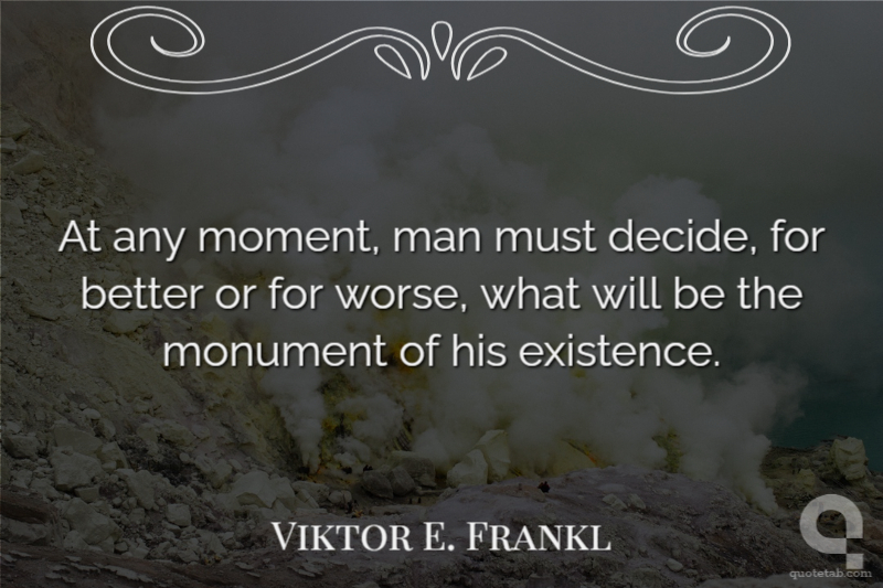 At any moment, man must decide, for better or for worse, what will be the monument of his existence.