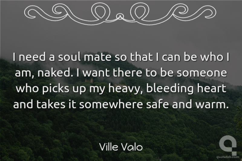 I need a soul mate so that I can be who I am, naked. I want there to be someone who picks up my heavy, bleeding heart and takes it somewhere safe and warm.