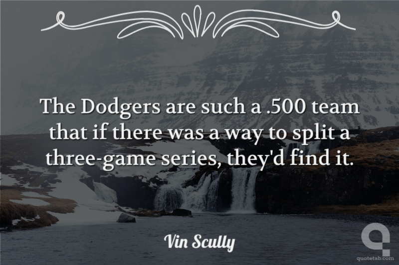 Vincent Edward "Vin" Scullyis an American sportscaster, best known as the play-by-play announcer for the Los Angeles Dodgers MLB team. He has been with the team since its days in Brooklyn. His 67 seasons with the Dodgersare the longest time any broadcaster has been with a single team in professional sports history, and he is second by one year to only Tommy Lasorda in terms of number of years with the Dodgers organization in any capacity...