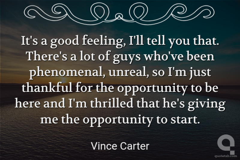 It's a good feeling, I'll tell you that. There's a lot of guys who've been phenomenal, unreal, so I'm just thankful for the opportunity to be here and I'm thrilled that he's giving me the opportunity to start.