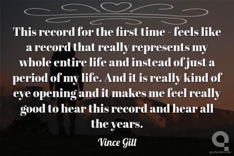 This record for the first time - feels like a record that really represents my whole entire life and instead of just a period of my life. And it is really kind of eye opening and it makes me feel really good to hear this record and hear all the years.
