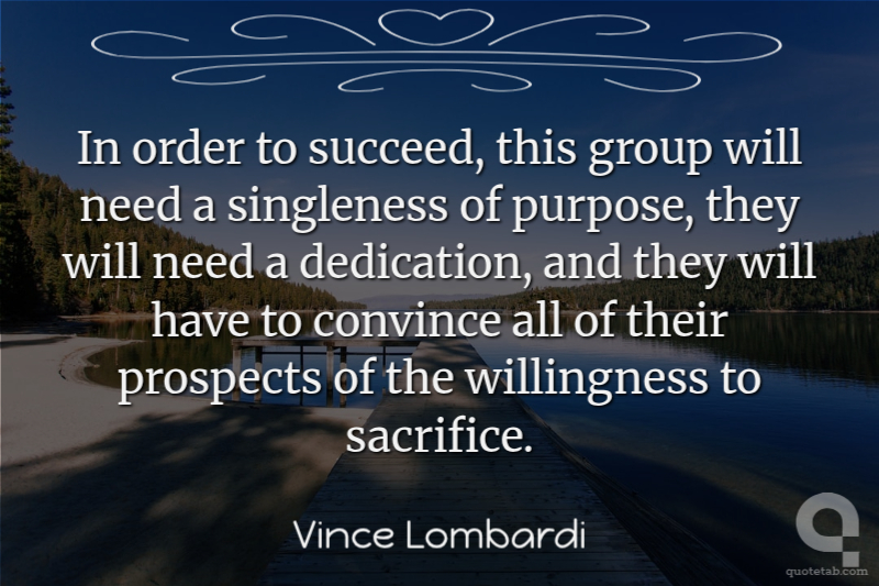 In order to succeed, this group will need a singleness of purpose, they will need a dedication, and they will have to convince all of their prospects of the willingness to sacrifice.