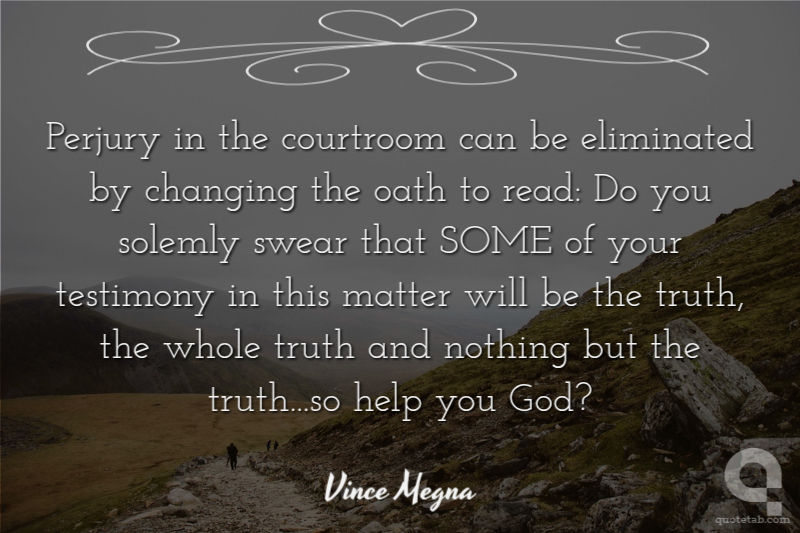 Perjury in the courtroom can be eliminated by changing the oath to read: Do you solemly swear that SOME of your testimony in this matter will be the truth, the whole truth and nothing but the truth...so help you God?