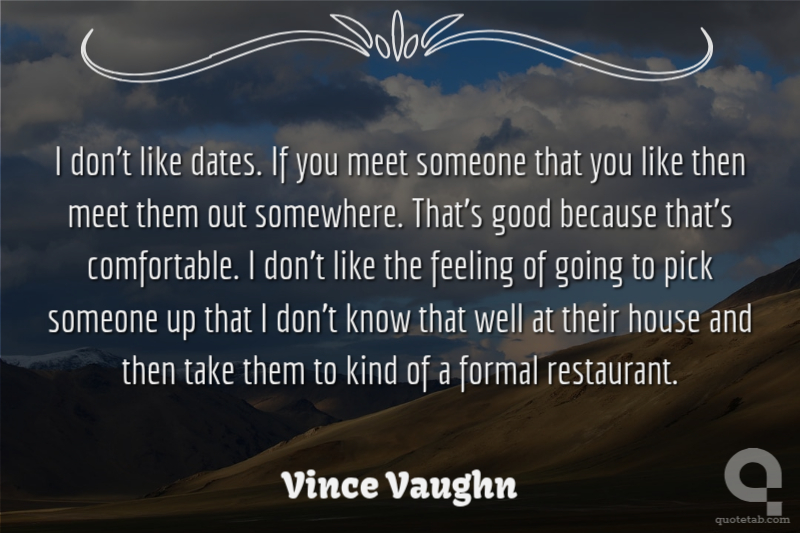I don't like dates. If you meet someone that you like then meet them out somewhere. That's good because that's comfortable. I don't like the feeling of going to pick someone up that I don't know that well at their house and then take them to kind of a formal restaurant.