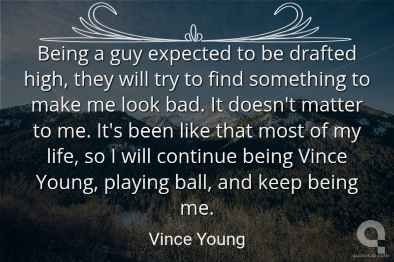Being a guy expected to be drafted high, they will try to find something to make me look bad. It doesn't matter to me. It's been like that most of my life, so I will continue being Vince Young, playing ball, and keep being me.
