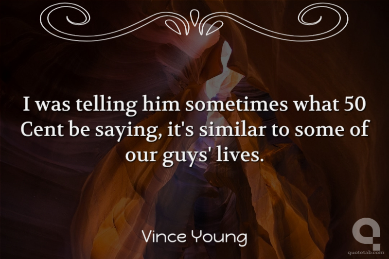 I was telling him sometimes what 50 Cent be saying, it's similar to some of our guys' lives.