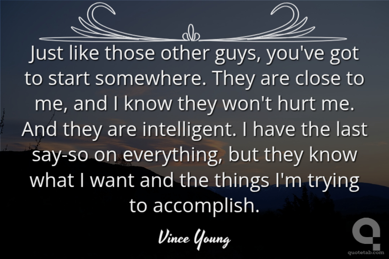 Just like those other guys, you've got to start somewhere. They are close to me, and I know they won't hurt me. And they are intelligent. I have the last say-so on everything, but they know what I want and the things I'm trying to accomplish.