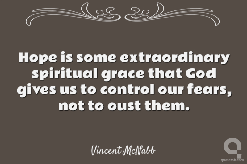 Hope is some extraordinary spiritual grace that God gives us to control our fears, not to oust them.
