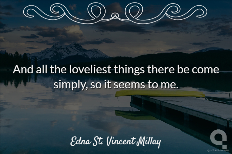 And all the loveliest things there be come simply, so it seems to me.