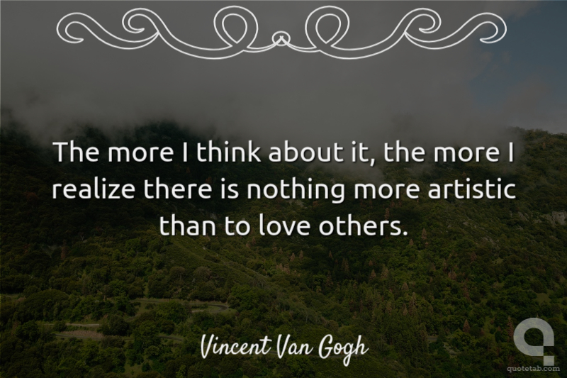 The more I think about it, the more I realize there is nothing more artistic than to love others.