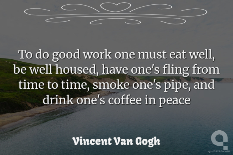 To do good work one must eat well, be well housed, have one's fling from time to time, smoke one's pipe, and drink one's coffee in peace
