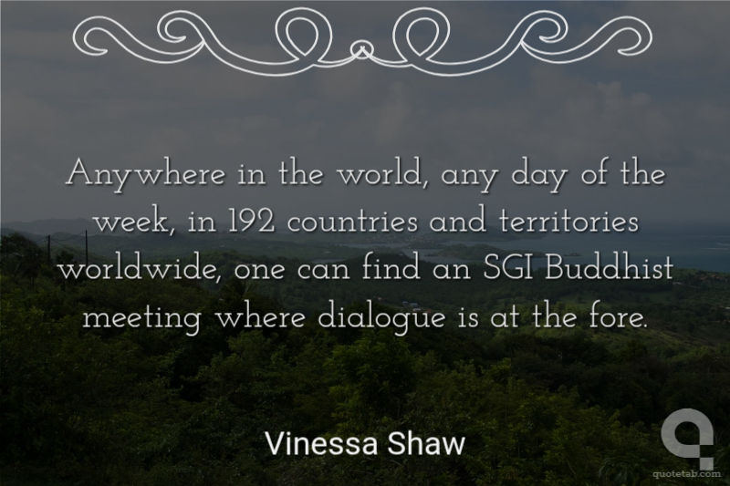 Anywhere in the world, any day of the week, in 192 countries and territories worldwide, one can find an SGI Buddhist meeting where dialogue is at the fore.