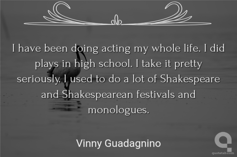 I have been doing acting my whole life. I did plays in high school. I take it pretty seriously. I used to do a lot of Shakespeare and Shakespearean festivals and monologues.