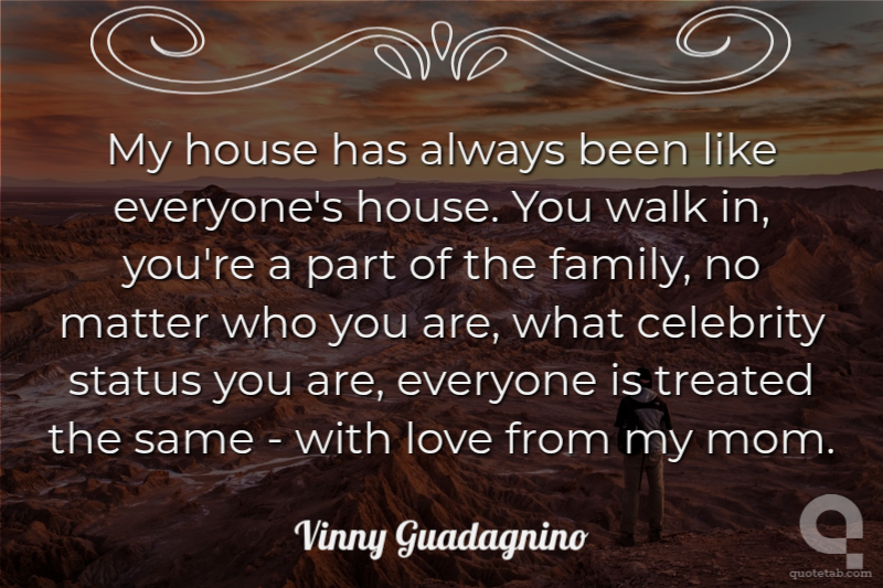 My house has always been like everyone's house. You walk in, you're a part of the family, no matter who you are, what celebrity status you are, everyone is treated the same - with love from my mom.