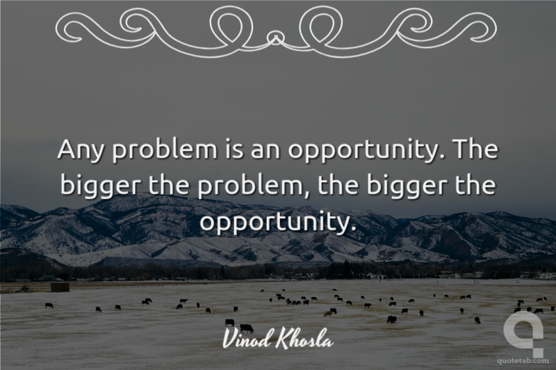 Any problem is an opportunity. The bigger the problem, the bigger the opportunity.
