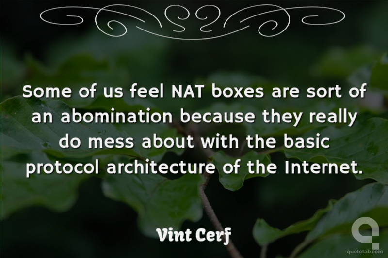 Some of us feel NAT boxes are sort of an abomination because they really do mess about with the basic protocol architecture of the Internet.