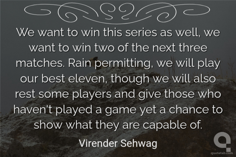 We want to win this series as well, we want to win two of the next three matches. Rain permitting, we will play our best eleven, though we will also rest some players and give those who haven't played a game yet a chance to show what they are capable of.