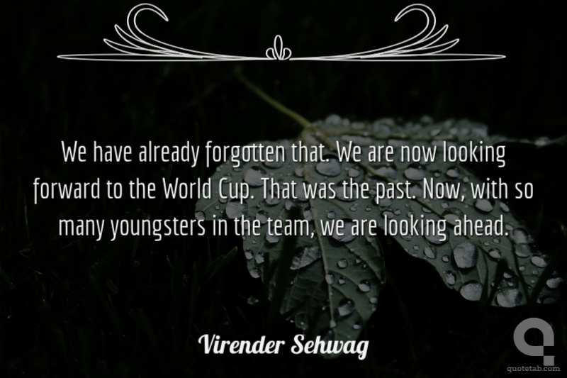 We have already forgotten that. We are now looking forward to the World Cup. That was the past. Now, with so many youngsters in the team, we are looking ahead.