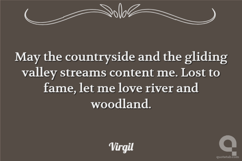 May the countryside and the gliding valley streams content me. Lost to fame, let me love river and woodland.