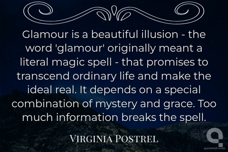 Glamour is a beautiful illusion - the word 'glamour' originally meant a literal magic spell - that promises to transcend ordinary life and make the ideal real. It depends on a special combination of mystery and grace. Too much information breaks the spell.