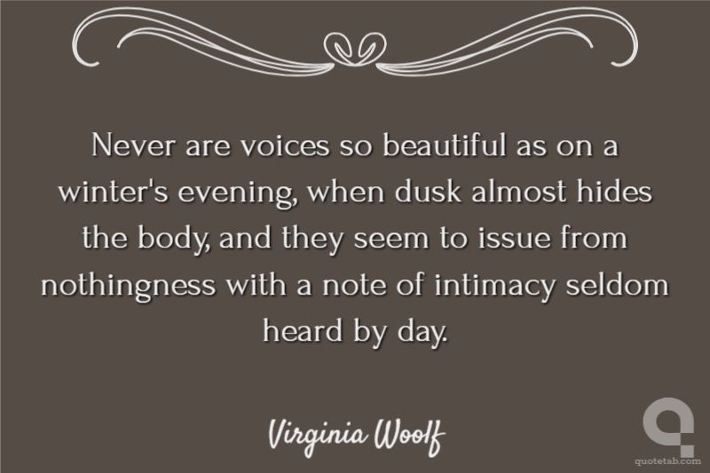 Never are voices so beautiful as on a winter's evening, when dusk almost hides the body, and they seem to issue from nothingness with a note of intimacy seldom heard by day.