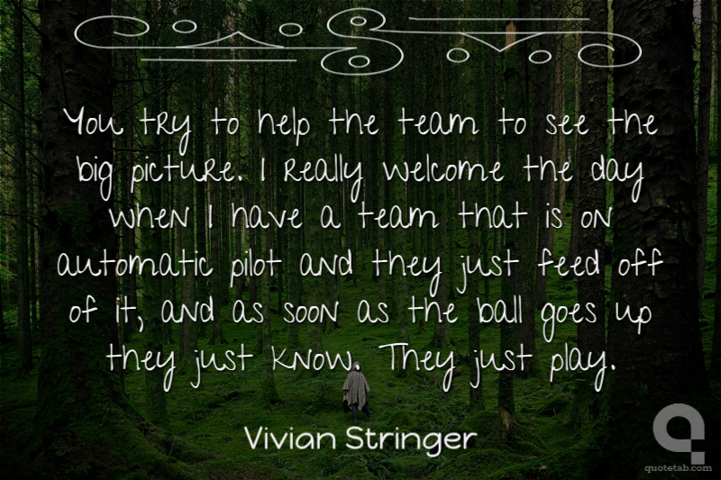 You try to help the team to see the big picture. I really welcome the day when I have a team that is on automatic pilot and they just feed off of it, and as soon as the ball goes up they just know. They just play.