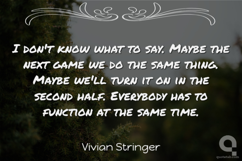 I don't know what to say. Maybe the next game we do the same thing. Maybe we'll turn it on in the second half. Everybody has to function at the same time.