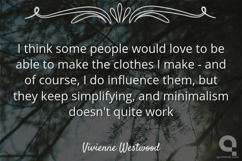 I think some people would love to be able to make the clothes I make - and of course, I do influence them, but they keep simplifying, and minimalism doesn't quite work