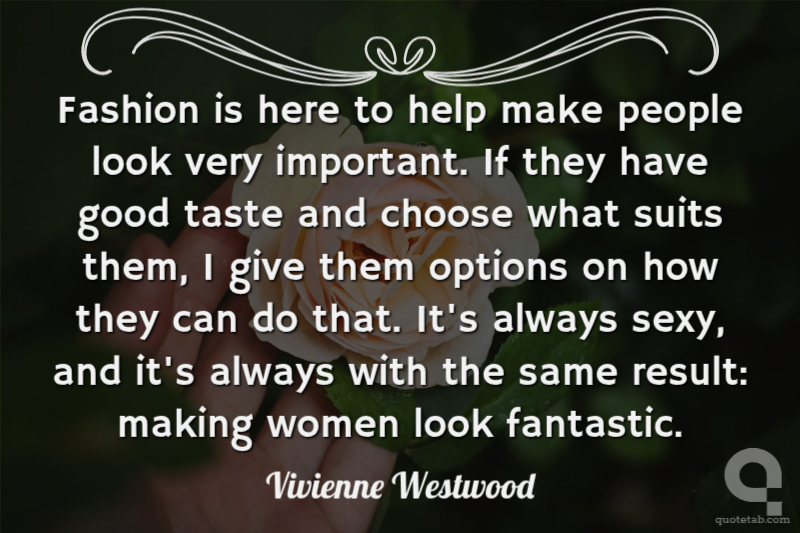 Fashion is here to help make people look very important. If they have good taste and choose what suits them, I give them options on how they can do that. It's always sexy, and it's always with the same result: making women look fantastic.