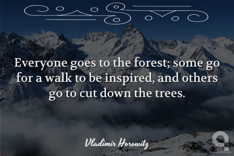 Everyone goes to the forest; some go for a walk to be inspired, and others go to cut down the trees.