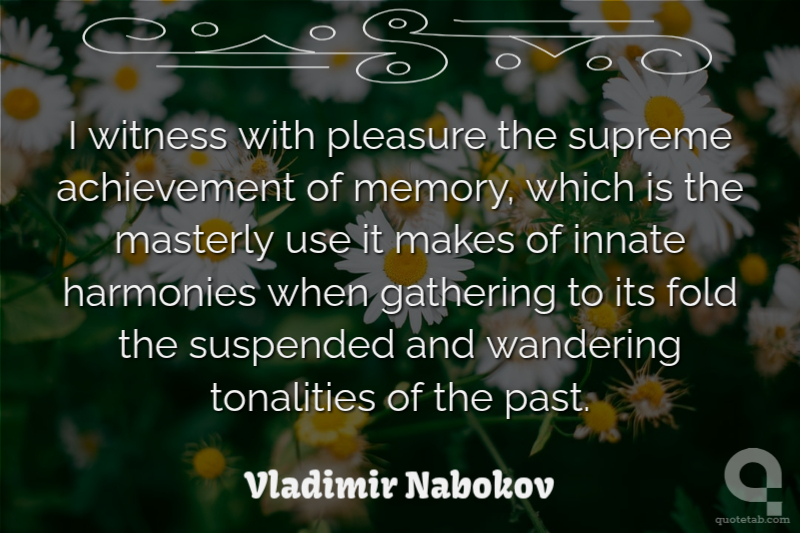 I witness with pleasure the supreme achievement of memory, which is the masterly use it makes of innate harmonies when gathering to its fold the suspended and wandering tonalities of the past.