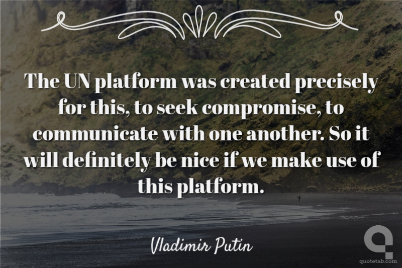 The UN platform was created precisely for this, to seek compromise, to communicate with one another. So it will definitely be nice if we make use of this platform.