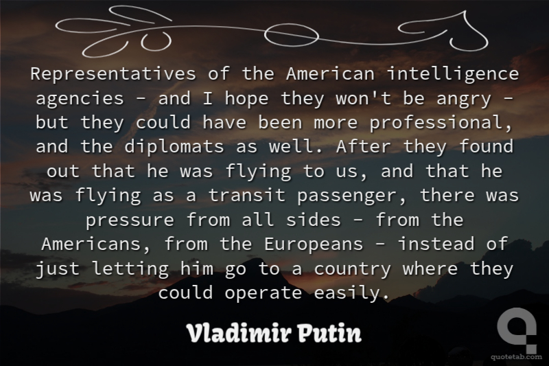 Representatives of the American intelligence agencies - and I hope they won't be angry - but they could have been more professional, and the diplomats as well. After they found out that he was flying to us, and that he was flying as a transit passenger, there was pressure from all sides - from the Americans, from the Europeans - instead of just letting him go to a country where they could operate easily.