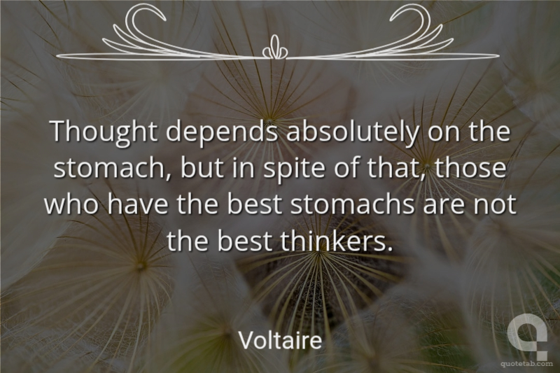 Thought depends absolutely on the stomach, but in spite of that, those who have the best stomachs are not the best thinkers.