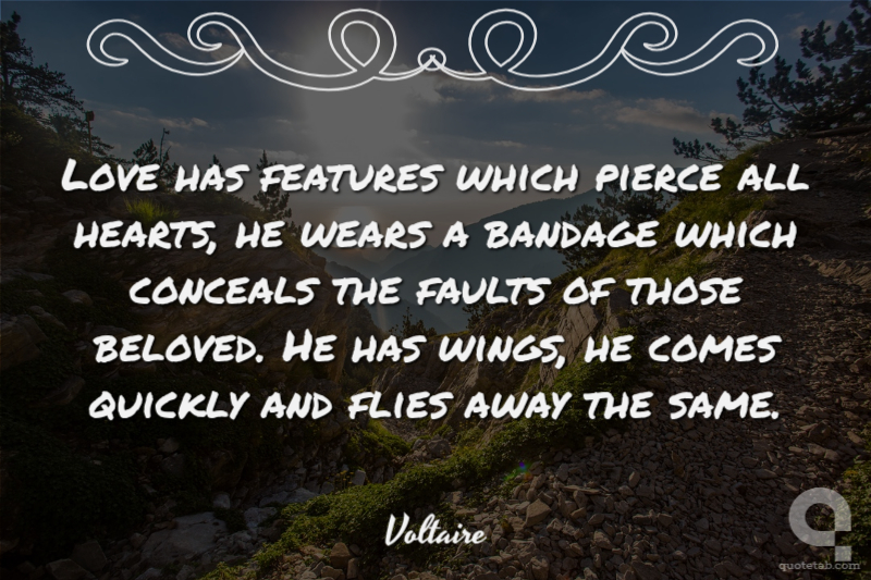 Love has features which pierce all hearts, he wears a bandage which conceals the faults of those beloved. He has wings, he comes quickly and flies away the same.