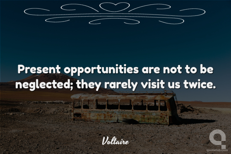 Present opportunities are not to be neglected; they rarely visit us twice.